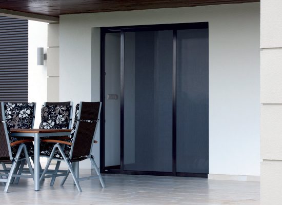 Doskonale sprawdzi się w dużych przeszkleniach drzwiowych np. taras. Modułowa budowa moskitiery pozwala ją składać w system jedno lub dwuskrzydłowy (kierunek zsuwania: do środka lub na jedną stronę). Plisowana siatka po złożeniu chowa się w profilu aluminiowym, dzięki temu moskitiera po złożeniu zajmuje niewiele miejsca.
